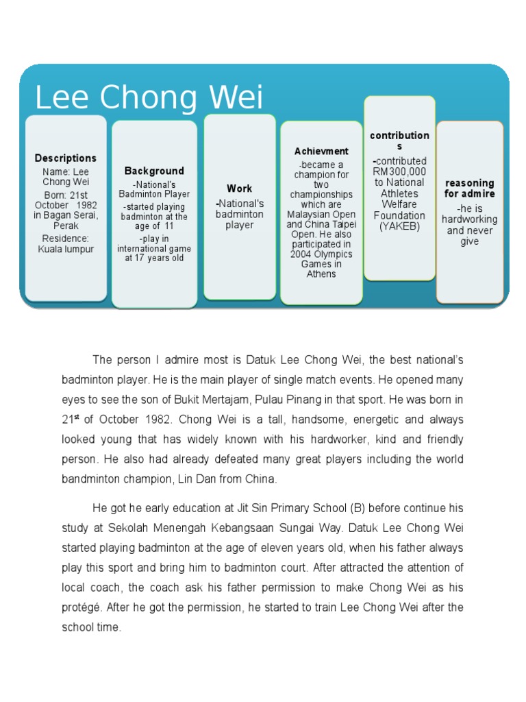 The Person I Admire Most Is Datuk Lee Chong Wei Pdf Sports Leisure